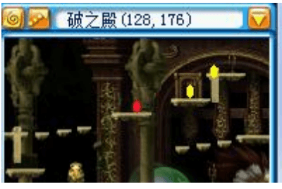 进入破之殿,本图很多地方有隐藏传送点,发现有的位置是死路,就可以按上试试。 本图底层有小狼:破军一个,推荐打,概率掉落红魂之玉。打死之后跳到如图所示的红色位置,互相贴高升贴,被贴的站红色位置(那个小平台的右边缘)不动,起飞到高层。 | ![]() |