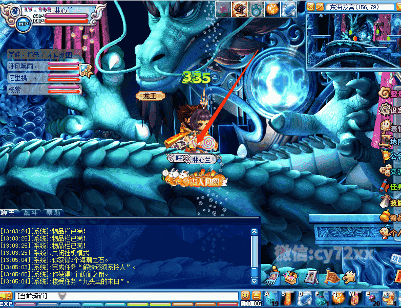 在龙王的中间用妖血之石头,妖血之石在背包-任务目录下! | ![]() |