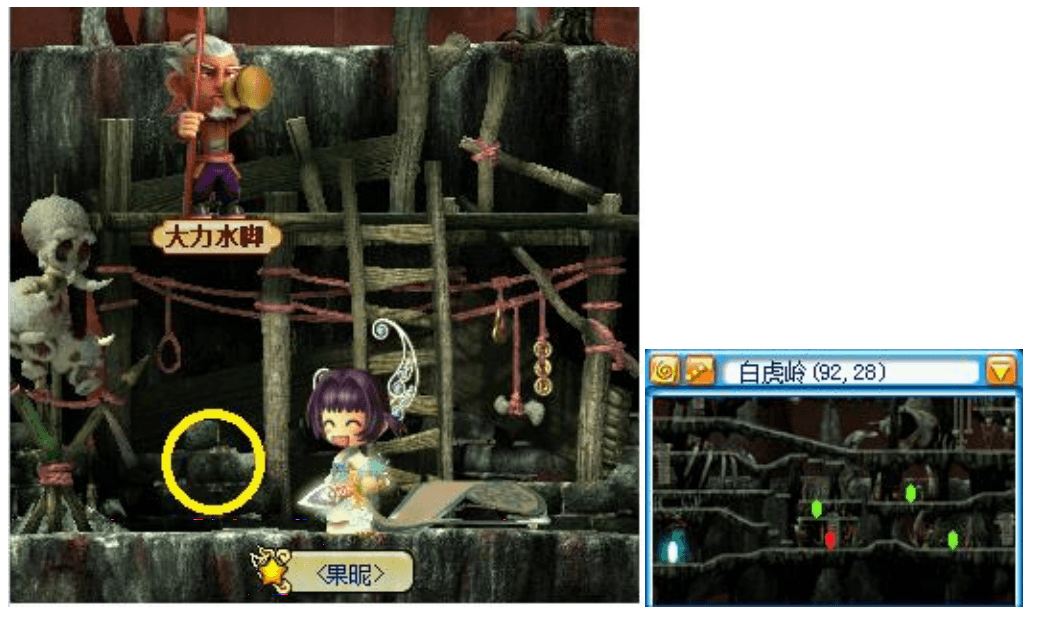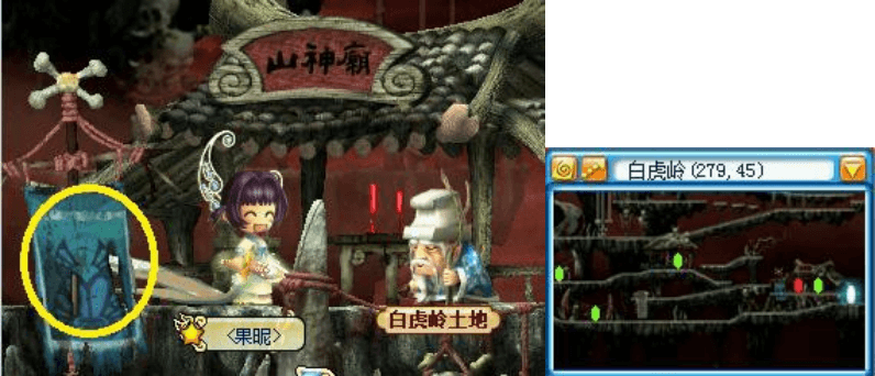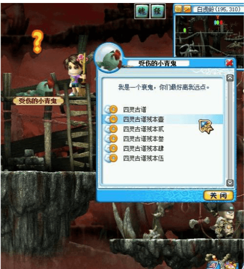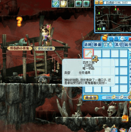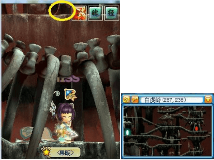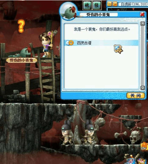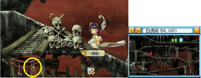 ![]() | 白虎岭,楼上,找小青鬼接任务,寻找四个位置。 |