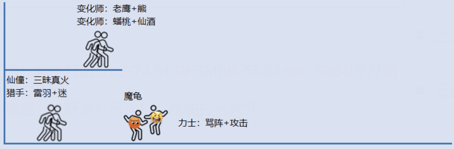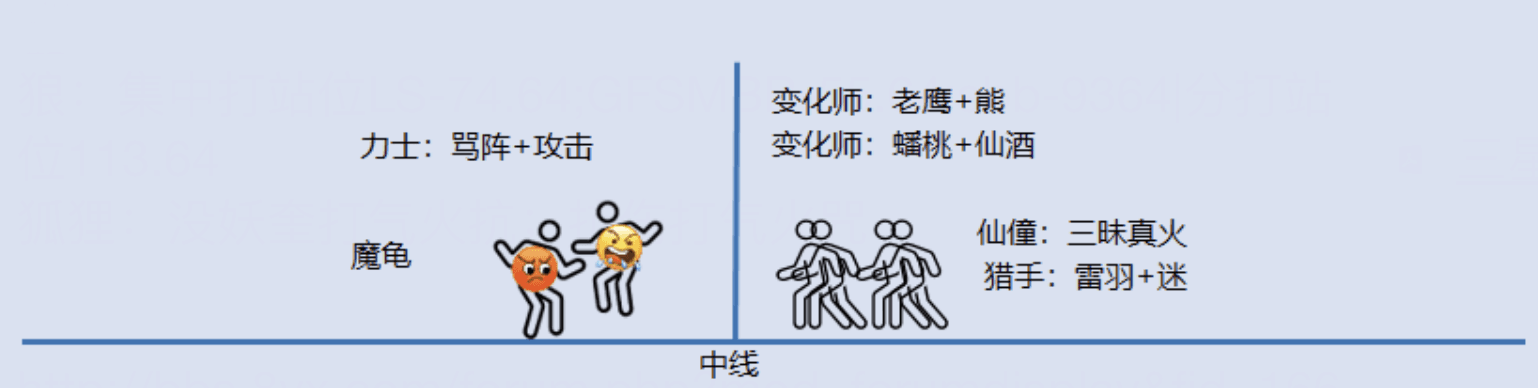 吃我一招魔龟冲撞 | 修罗龟闪 | 先拉开身位,然后用极快的速度突击后排 | 力士面对队友站位,骂阵魔龟 |