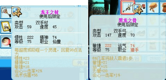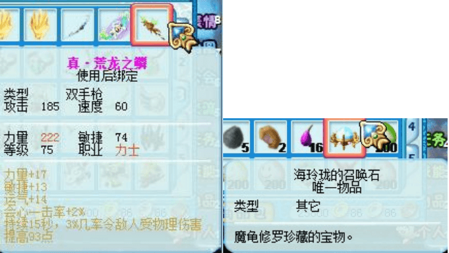稀有掉落有龙王之杖,黑龙之骨,黑光分水,巨浪,真·荒龙之鳞,海玲珑的召唤石: