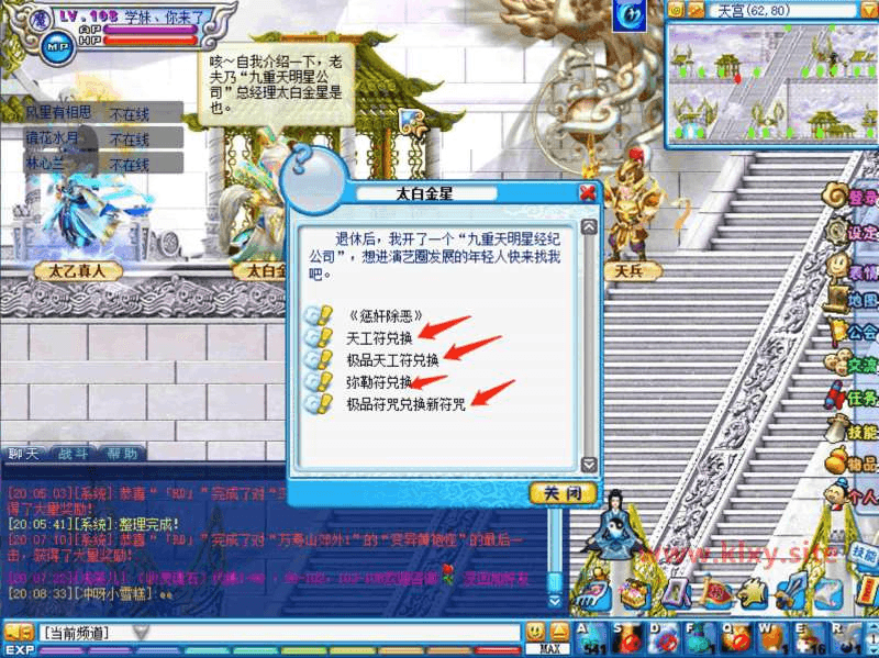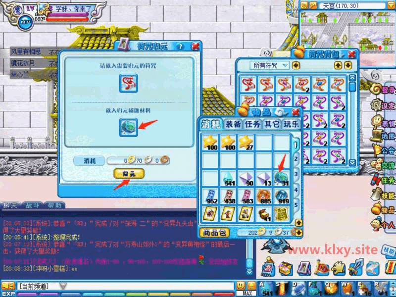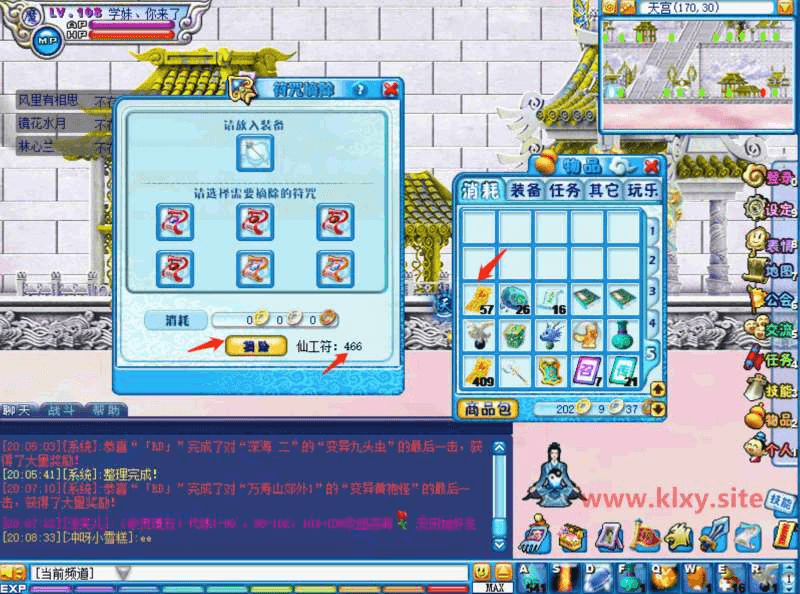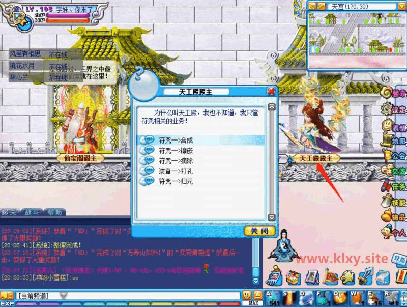 传送到天宫,最下面层的最右边有个天宫殿殿主,所以新装备符文操作都在这里完成!