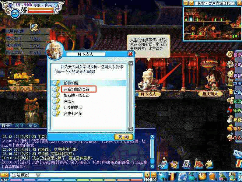 先到长安内城找月老领取 幻境符