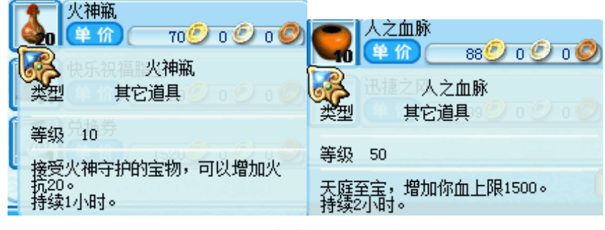 火神瓶和人之血脉都是合成用的材料,本身也可以直接使用,人之血脉商城有售,两者也可以通过挖宝和打开快乐惊喜箱获得,推荐留着。 | ![]() |