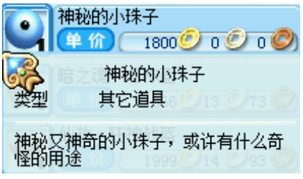 神秘的小珠子是不周山赏月活动的奖励,也是制作战宠之魂的任务物品,可以找玩具购买。 | ![]() |