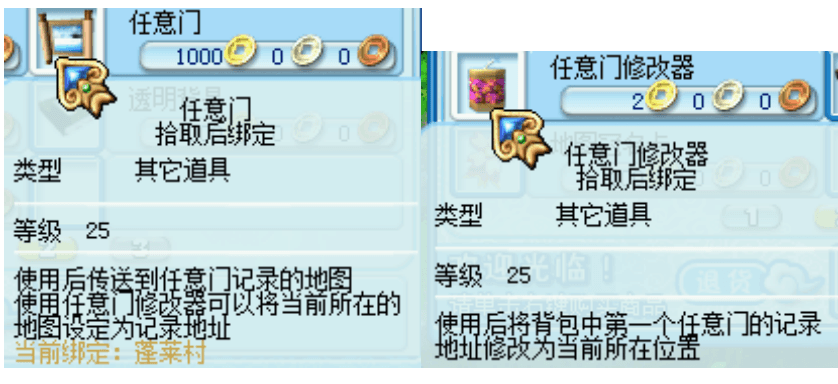 任意门和炉石效果一样,区别为任意门不是唯一物品。 | ![]() |