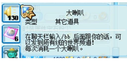 大喇叭是商城道具,就是可以直接全服公告的。在商城或者玩家处购买,注意/bb和喊喊内容中间有个空格。 | ![]() |