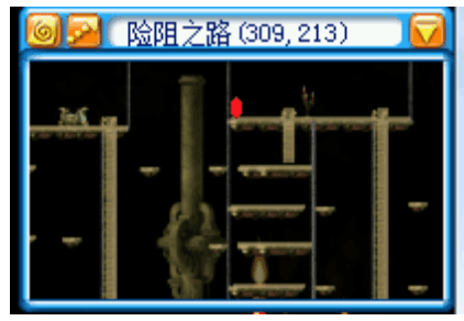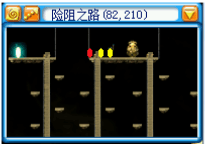 进入险阻之路,险阻之路有正常走法,注意不要被怪物打掉到地上就可以了,掉到地上就按 esc 选择人物。也有快捷打法,就是在到达顶层之后,在靠近左边墙的地方通过快乐贴往左飞,如图的位置,互相贴快乐贴,被贴的人一直按右,没有被贴的在旁边一直跳。 | ![]() |